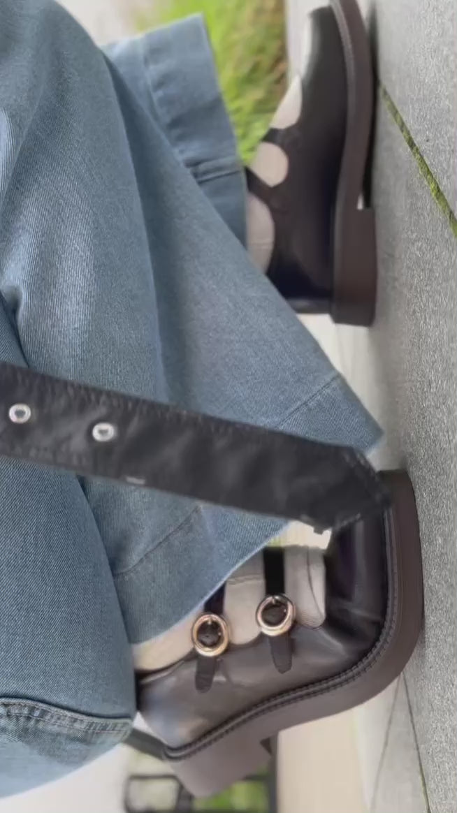 Divas Mary Jane siksniņas ar zeltītām sprādzēm – klasikas un mūsdienīguma kontrapunkts. Āda – mīksta, bet ar stāju, starp maigumu un spēku. Ideāli domāti mākslas telpām, kavētiem vilcieniem un īsiem, bet zīmīgiem skatieniem.