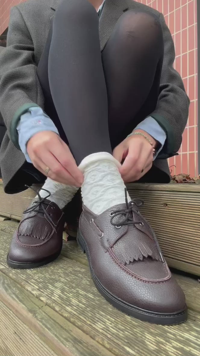 Papildus ādas valoda – bārkstis, kas nav tikai dekors, bet nianse. Vēl viena detaļa – virves stila caurumi, kas piešķir vieglu jūras pieskārienu bez kapteiņa kostīma.
