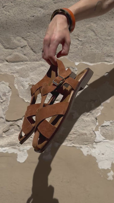 Šīs krēmkarameles toņa ādas sandales ir izsmalcināta klasikas pārrakstīšana, paredzēta tām, kas novērtē estētiku bez piepūles. Platas zamšādas siksnas šķērso pēdu slīpi tā, it kā zinātu, ko dara – katram leņķim šeit ir sava ģeometrija. Graciozs siluets, smalka zelta krāsas sprādze un maigs iekšzoles polsterējums garantē komfortu pat tad, ja parasti neizvēlies “ērtu”. It kā nejauši valdzinošas – kā sieviete, kura ir pieradusi, ka uz viņu skatās, bet nejūt vajadzību atbildēt ar to pašu.