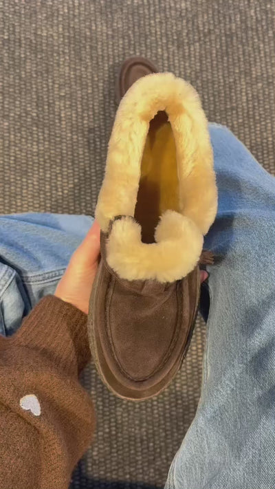 Zomšinė versija tiems patiems rytams, kai stilius turi būti šiltas. Švelnus paviršius, auksinė sagtis ir lengvai valiūkiškas kutas – čia viskas apie detales, kurios kuria nuotaiką. Atrodo tarsi iš kalnų namelio, bet veikia miesto gatvėse. Tinka toms, kurios moka derinti ramybę su ironija – ir visada turi savo temą.