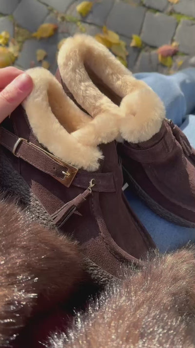 Kai šaltis įkvepia stilių, o ne tik poreikį šilumai. Šie batai – kaip miesto ritualas: minkštas kailiukas, išraiškinga tekstūra ir auksinė sagtis, kuri tarsi kabutės pabaigoje. Juose susitinka funkcija ir charakteris – be jokių kompromisų. Puikiai tinka toms dienoms, kai nori atrodyti lyg nieko neplanuotum, bet viskas vis tiek išeina tobulai.
